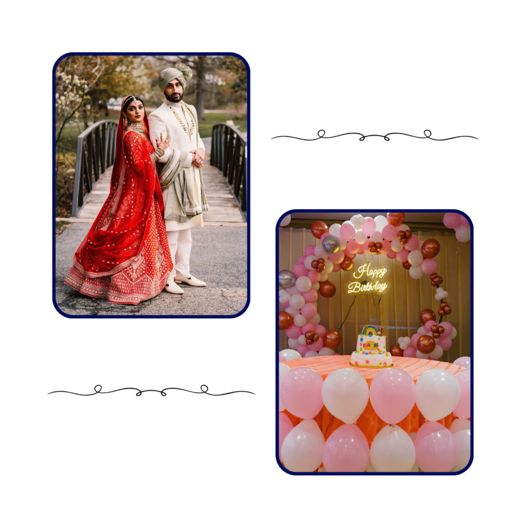 We specialize in weddings, birthdays, corporate events, religious ceremonies, kitty parties, housewarming, and many more customized celebrations.